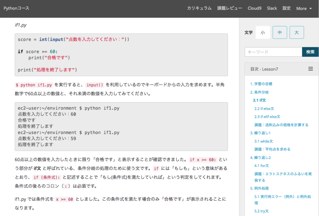 カリキュラムの前半はPythonのデータ型・変数・構文・関数等の基礎的な内容です。プログラムを実行してみて、書き方に慣れる感じです。覚えるだけなので、難しくはないです。